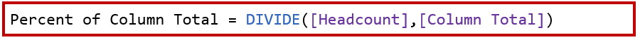 Finally, we need to calculate the % of Percent of column total by dividing the headcount by the column total.