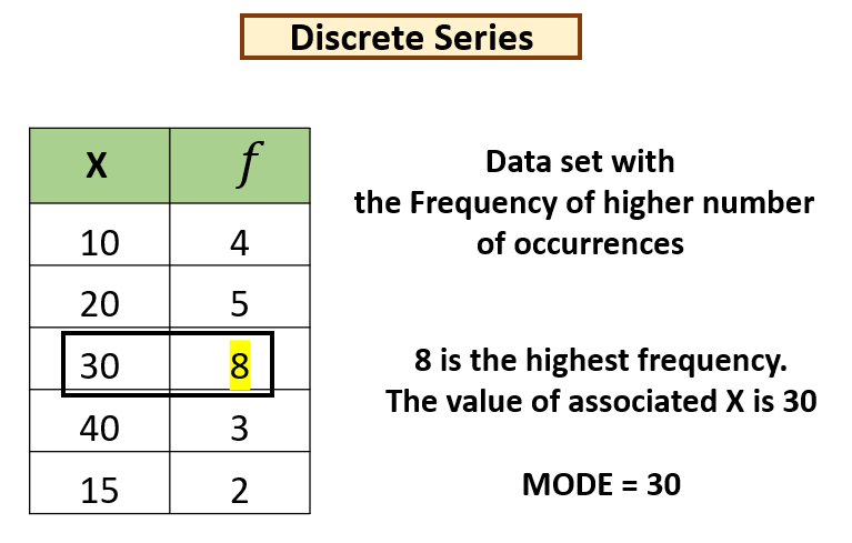 It is also called Ungrouped Frequency Distribution. Discrete Series are shown on the basis of definite/discrete values. There is more than one frequency for each item. Different values of the variables are shown with their respective frequencies. A discrete variable does not take a fractional value but takes just definite integral values.