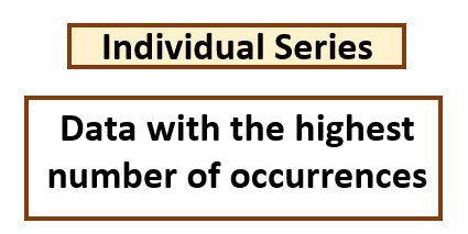 In this series, each type of value is shown separately. Groups or Classes are not formed. Individual Series has only one column and that is the observations. There is no column for frequency. All the observations have a frequency of 1.