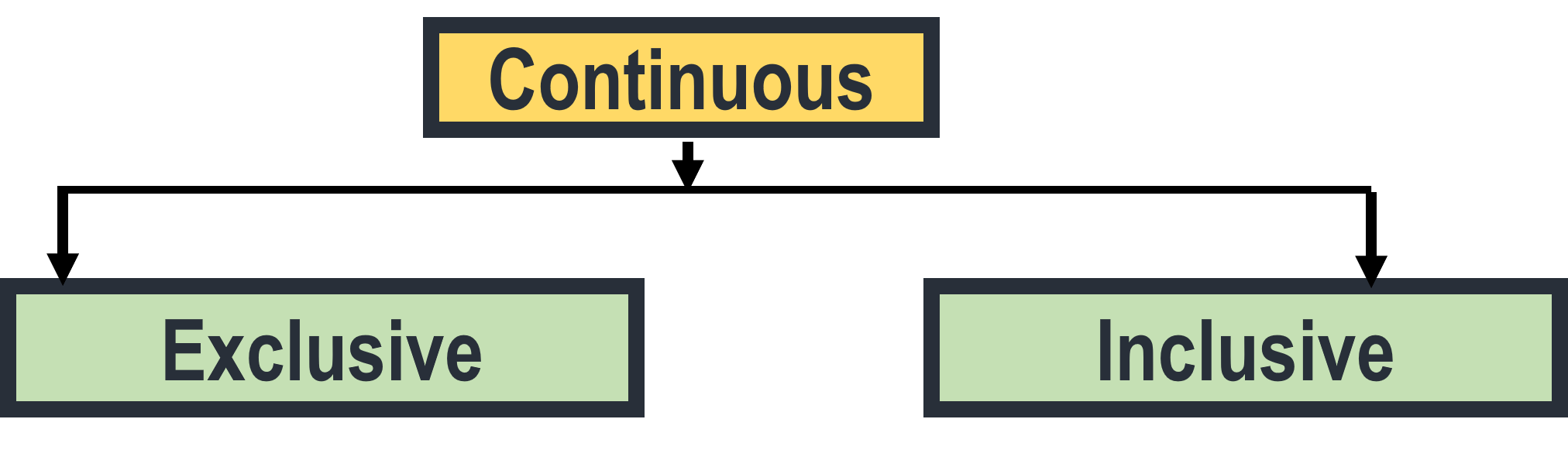 It is also called Grouped Frequency Distribution. A continuous series is one which the different values of the variables are stated in a continuous manner along with their respective frequencies. The classes are formed from beginning to end, without any breaks. Such series can be stated either in the form Inclusive or Exclusive.